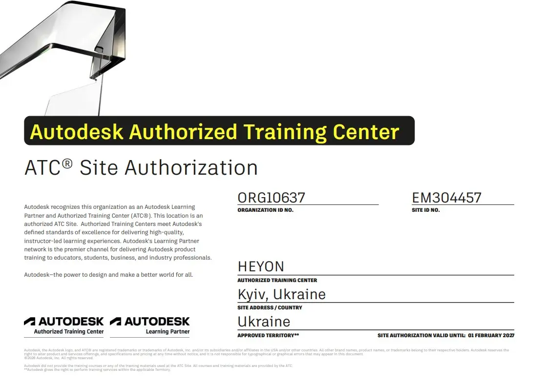 LLC Heyon Ukraine is an authorized Autodesk training center. As a result, our training programs meet the highest quality standards and our participants receive the certificates with global recognition.